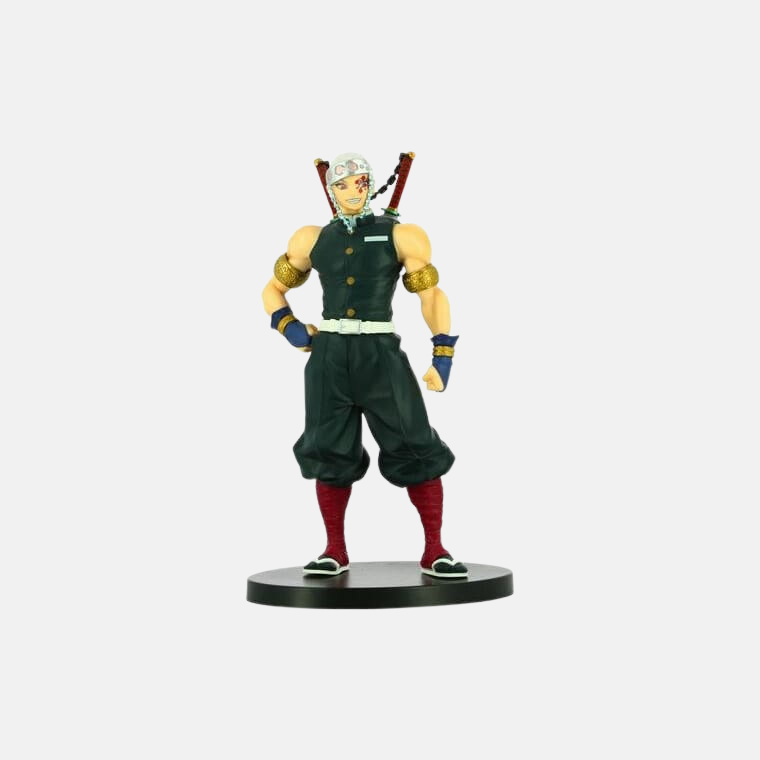 • Design "Partition Musicale" : La sculpture met en scène le style inimitable d'Uzui. Son bandeau orné de bijoux, son maquillage iconique, son uniforme de pourfendeur sans manches exhibant sa musculature de shinobi, et bien sûr, ses immenses doubles lames de Nichirin. Chaque détail est une déclaration de flamboyance.