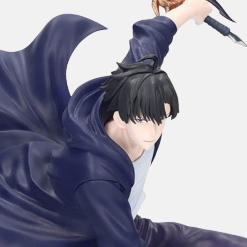 Le Chasseur en Mouvement : Cette figurine est un hommage au style de combat de Sung Jin-Woo, un assassin qui submerge ses ennemis par sa vitesse. Elle représente le Monarque au cœur d'un donjon, un prédateur agile se déplaçant entre les ombres avant de porter le coup fatal.