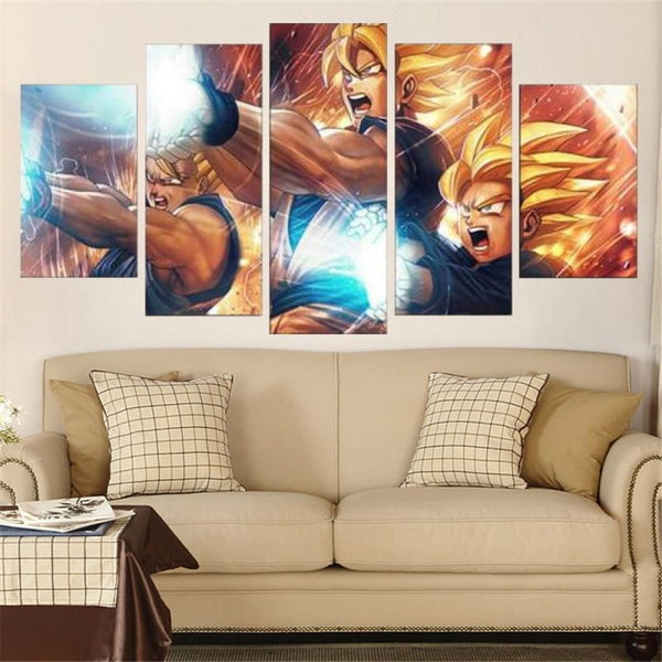 💡 Astuce de la Famille Son : Ce tableau représente l'union ultime des héros. Pour un affichage "Le Choc Légendaire", placez-le en face d'un tableau de leur adversaire, le Super Saiyan Légendaire Broly. La confrontation des deux œuvres sur vos murs recréera l'un des combats les plus appréciés des fans.