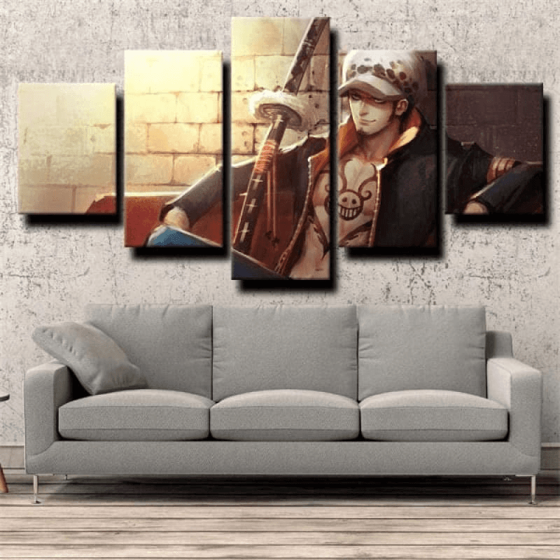 Ces deux mots suffisent à faire trembler les plus grands. C'est la signature de Trafalgar Law, le capitaine de l'Équipage du Heart et détenteur du Ope Ope no Mi, le Fruit du Bistouri. Ce tableau en 5 pièces le capture dans sa posture iconique, calme et calculateur, le maître absolu de son domaine, prêt à remodeler le monde selon ses plans.