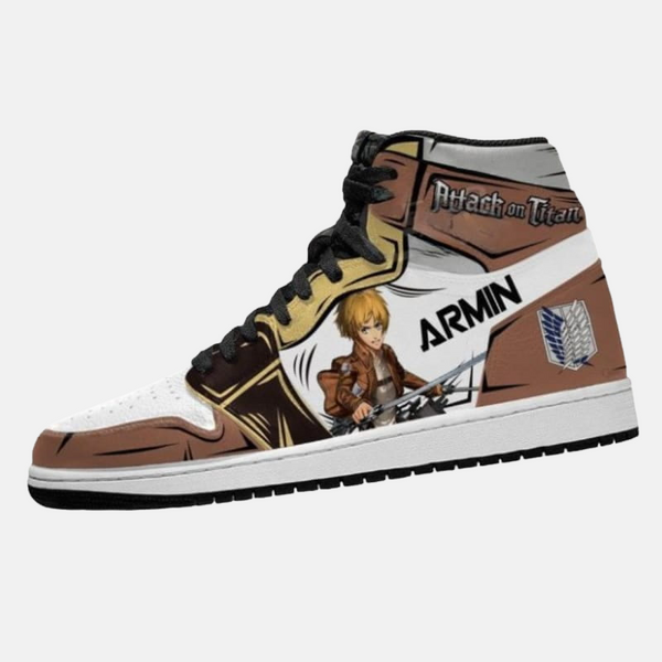 Design "Six Chemins" : Adoptant une silhouette montante, ces baskets sont un hommage à la puissance de Nagato. Le design arbore une palette de couleurs bordeaux et noir, rappelant les cheveux du clan Uzumaki et la tenue de l'Akatsuki, avec des illustrations du personnage et le symbole du Rinnegan.