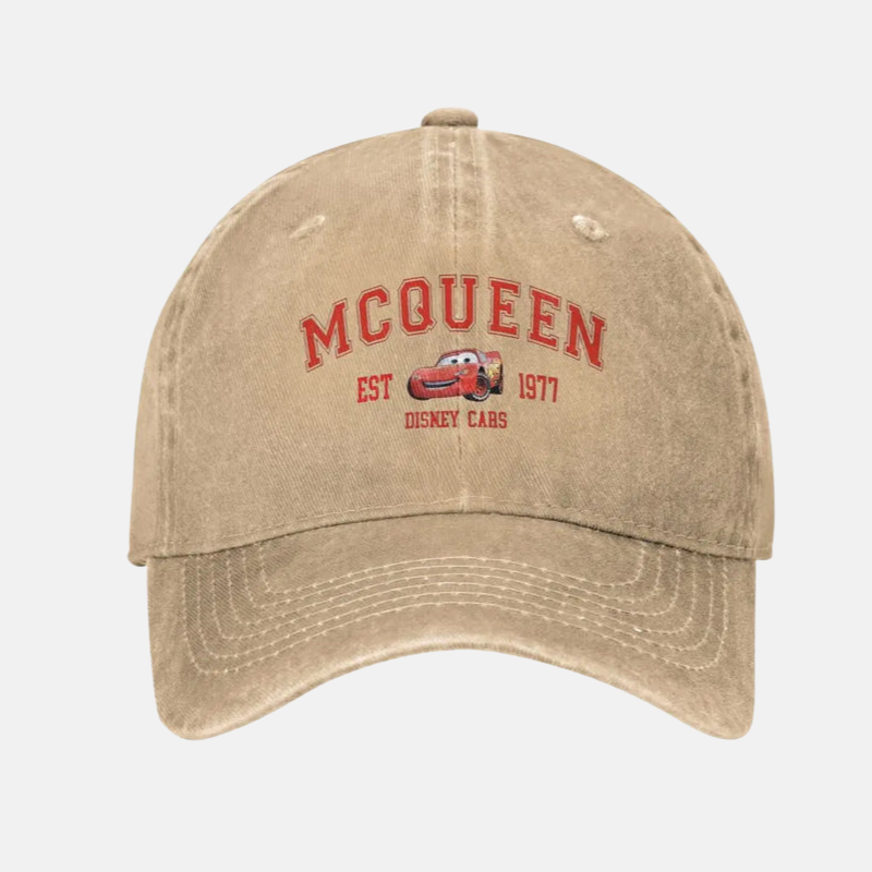 Design "Paddock Rétro" : Un look tout droit sorti des archives de la Piston Cup ! Arborant fièrement le logo "McQueen Est. 1977 - Desert Racing" brodé avec un style d'époque, et dotée d'un effet "distressed" (usé) pour une authenticité maximale, cette casquette est un véritable voyage dans le temps. Disponible en beige sable ou gris asphalte.