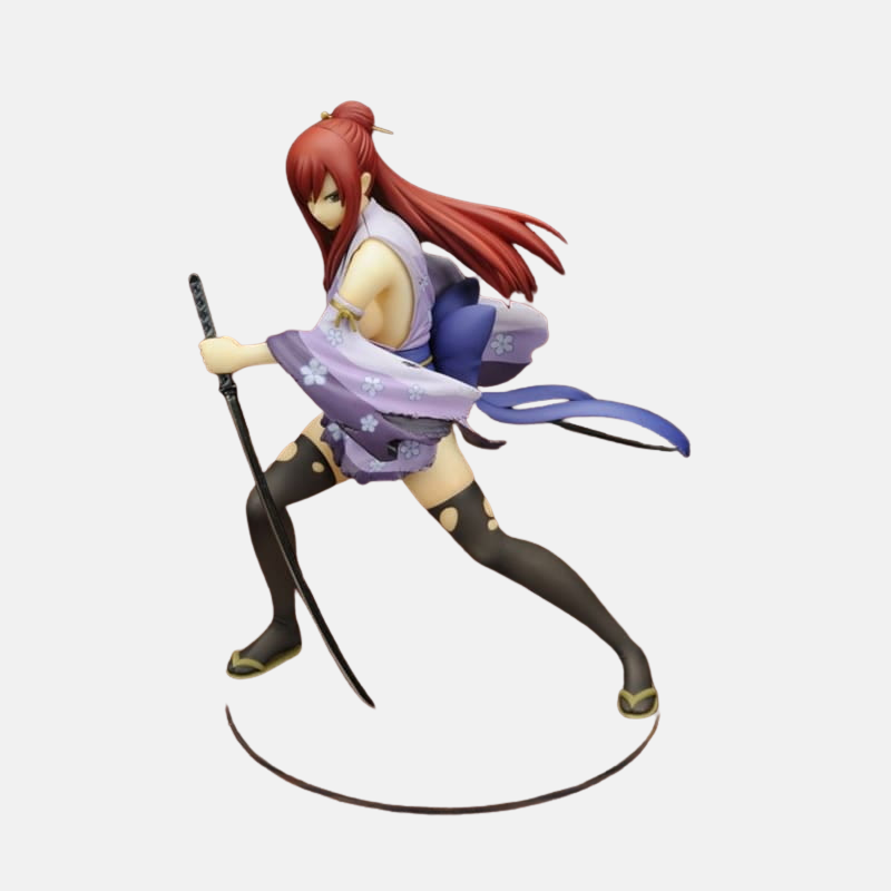 Design "Robe de Yuen - La Tenue de la Flexibilité" : La sculpture capture Erza dans une pose de combat dynamique, son katana prêt à frapper. Sa tenue, un kimono élastique violet, est rendue avec une grande fluidité, accentuant l'impression de mouvement et de grâce. C'est le portrait d'une épéiste qui a une confiance absolue en sa capacité à esquiver n'importe quelle attaque.