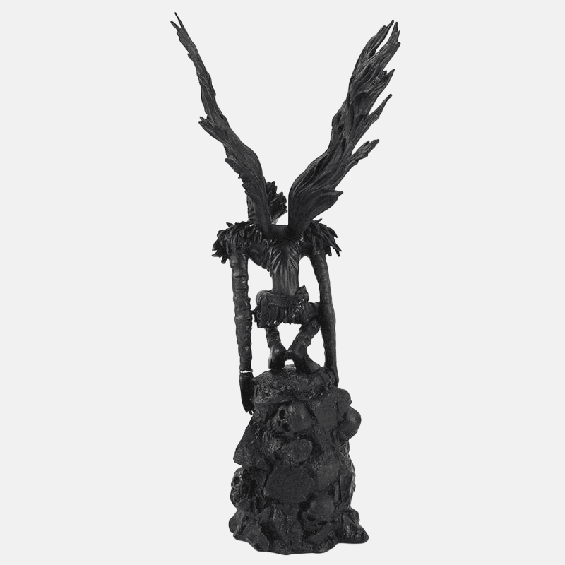 • Design 'Dieu de la Mort' : Cette figurine Statue représente Ryûk dans son design massif et effilé, recouvert de plumes et d'ailes noires ébène. La sculpture est haute gamme et parfaitement fidèle à l'anime, du bouc à la boucle d'oreille en forme de cœur, jusqu'à l'expression amusée qui le caractérise.