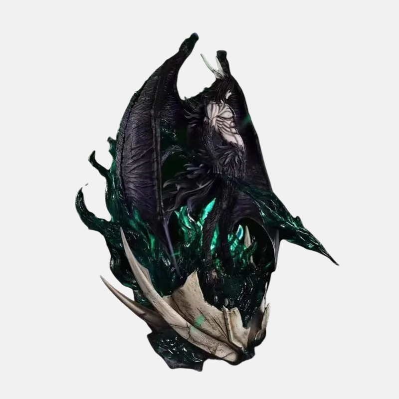 Finition "Luz de la Luna" : Fabriquée en PVC et ABS de la plus haute qualité, cette figurine bénéficie d'une sculpture d'une complexité rare, en particulier sur la texture de ses ailes. L'utilisation de pièces translucides pour les effets d'énergie verte crée un contraste saisissant avec le noir mat de sa forme démoniaque.