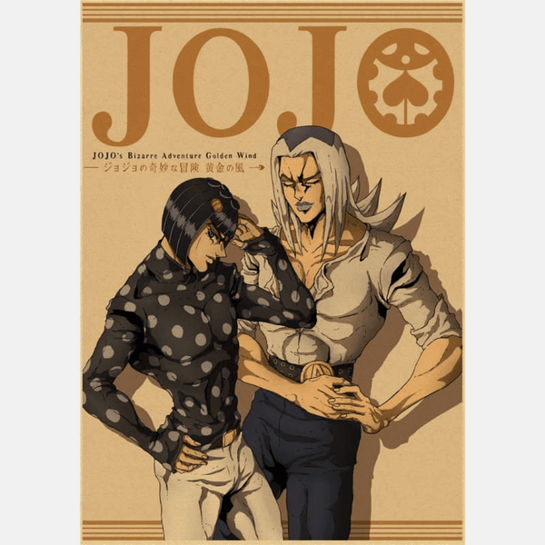 Un Duo Indéfectible : Cette œuvre met en scène la relation complexe et la loyauté sans faille entre le chef charismatique, Bruno Bucciarati, et son fidèle mais tourmenté coéquipier, Leone Abbacchio. Une représentation puissante de la confiance et du sacrifice.