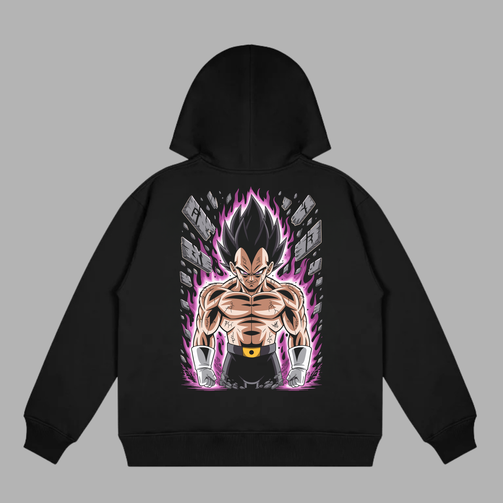 Affichez votre puissance avec le Sweat Vegeta Aura Obscure – un design sombre et intense qui capture l’énergie brute du Prince des Saiyans.